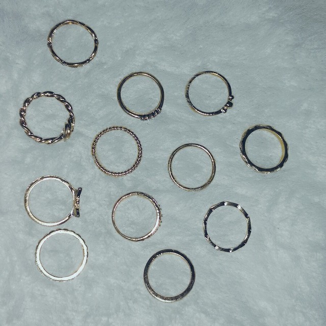 When too much is not enough, you go all out. This ring set can be worn individually, or as a full set of 12 rings to really make your fingers pop. A beautiful variety of simple bands and textured designs, there’s sure to be something to suit.
