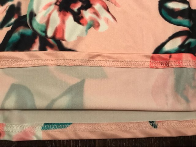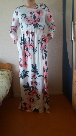 Just gorgeous and very beautiful dress. Nice fabric and a clear pattern. Seams are flat and neat. Fabric stretches very well. Very fast shipping in 1.5 weeks.