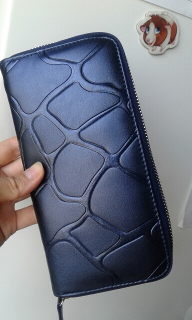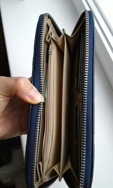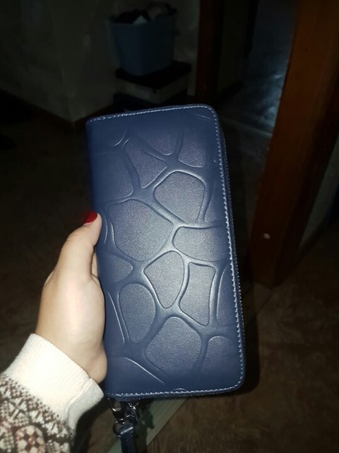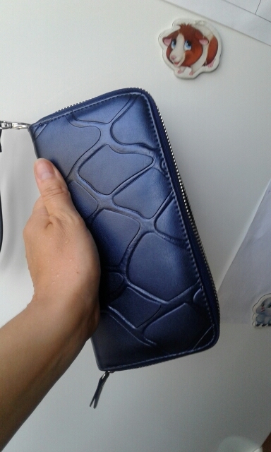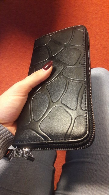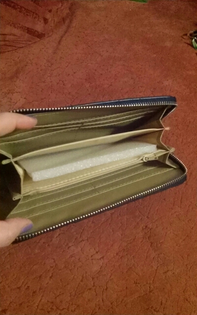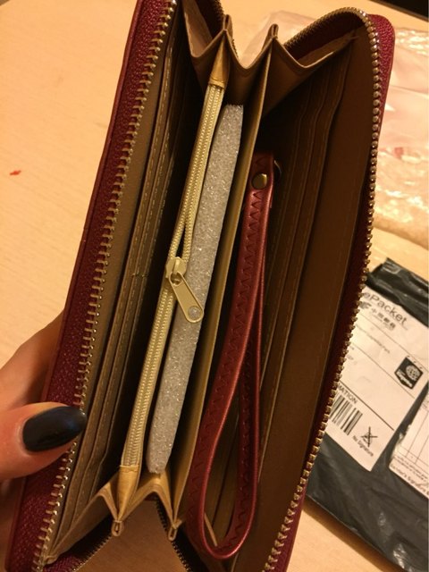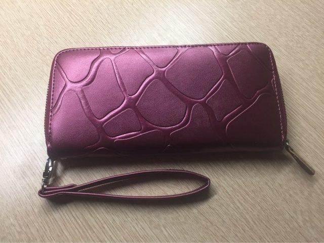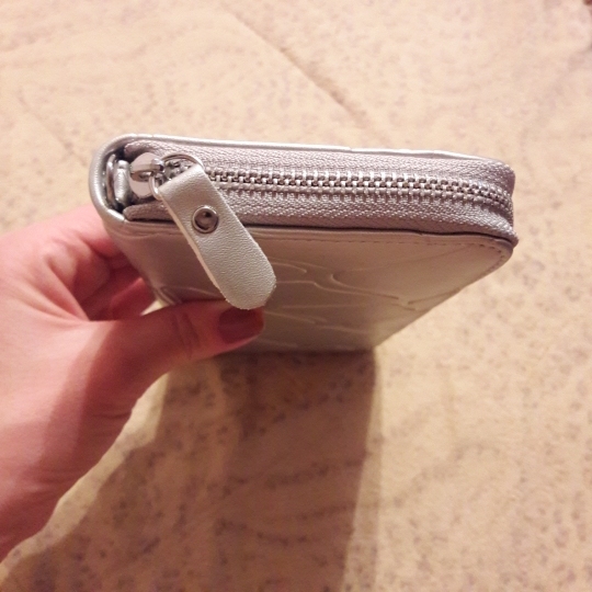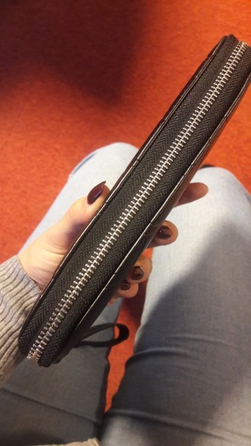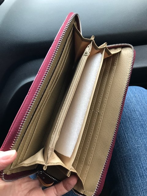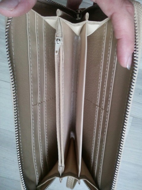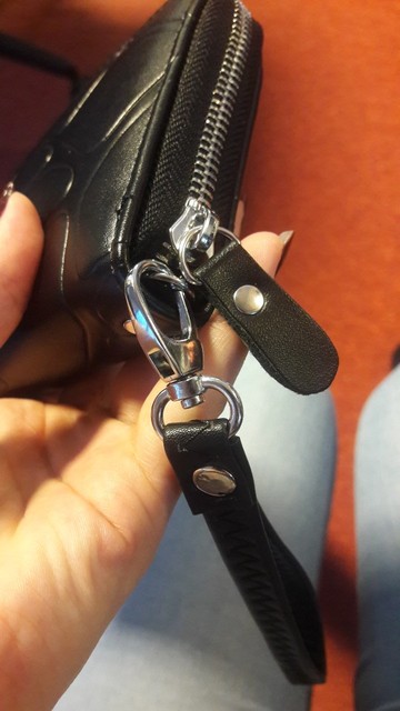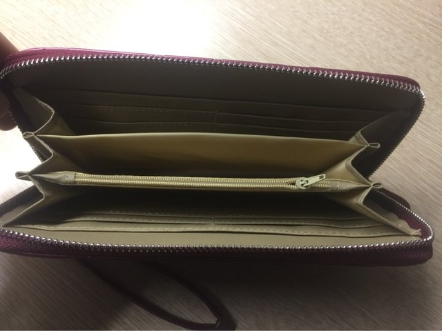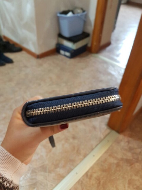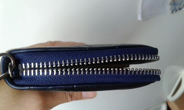 Good wallet, zipper workers, very straight stitching and no smell.