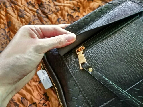 Retro is all the range, and so we bring you this beautiful retro purse with its convenient exterior pocket. The textured surface adds just the right bit of interest alongside the accents, great for Ladiez on the go!