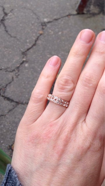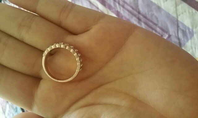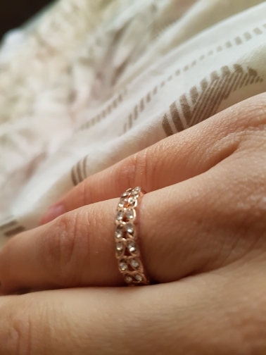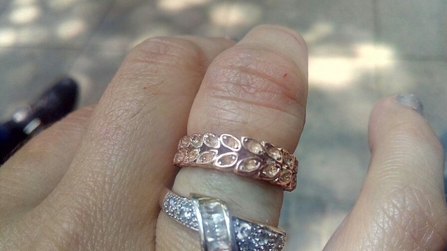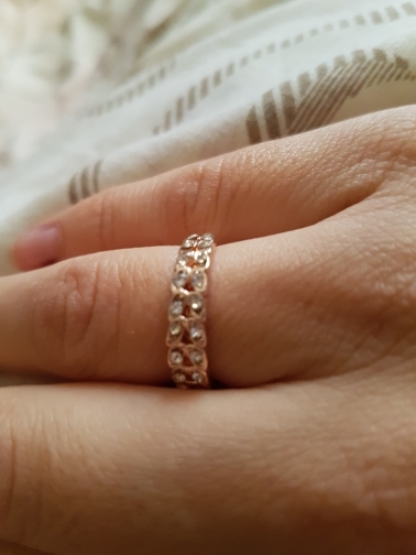 The pattern of this ring was simply lovely, an interlocked design of petals graced with a sparkle of crystalline dew it suits the elegant debutante and the earth child wanting to show a bit flash alike.