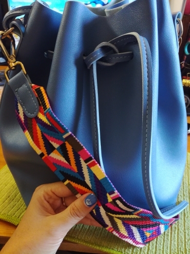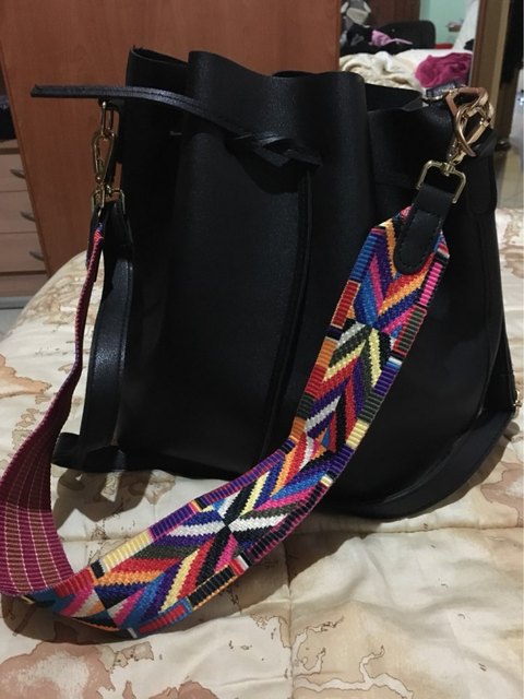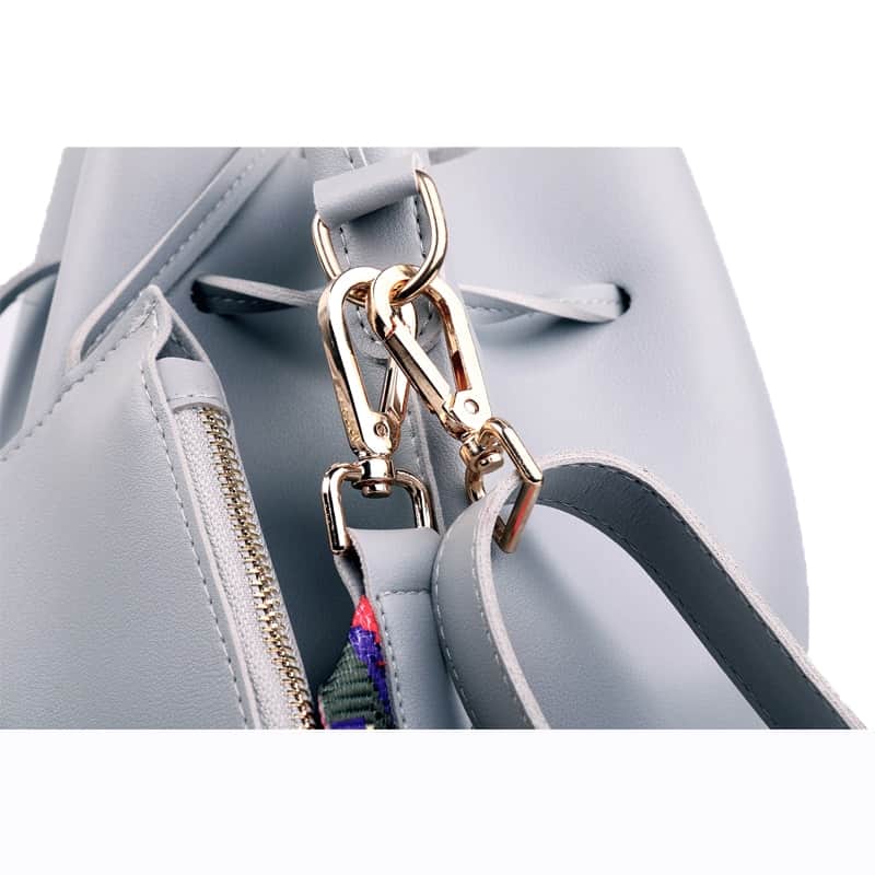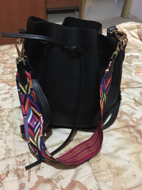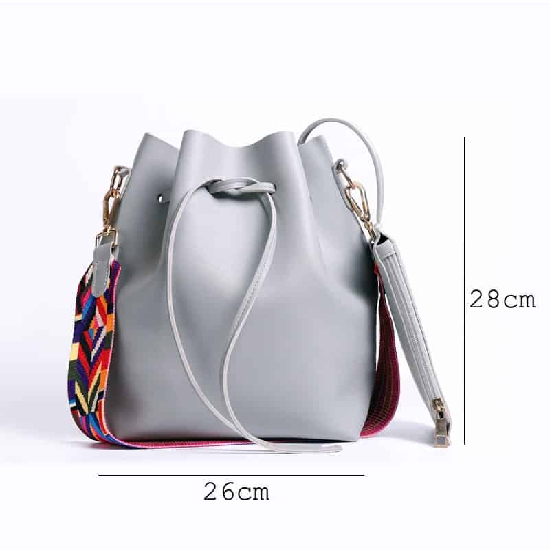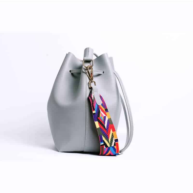 Sometimes it’s the accent on a piece that makes it great, and that’s the case with this simple bucket bag. The bag itself has a drawstring design that makes it secure while the strap adds a striking splash of color. A great accent to an otherwise understated outfit.