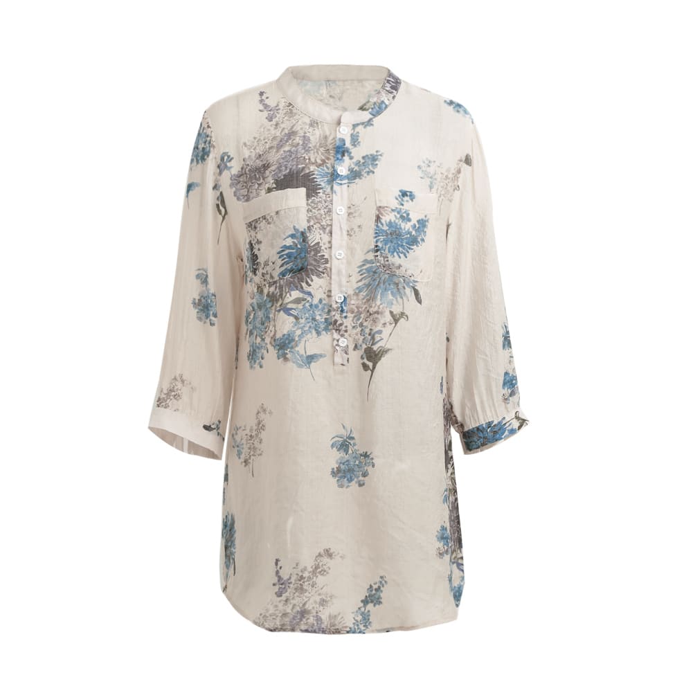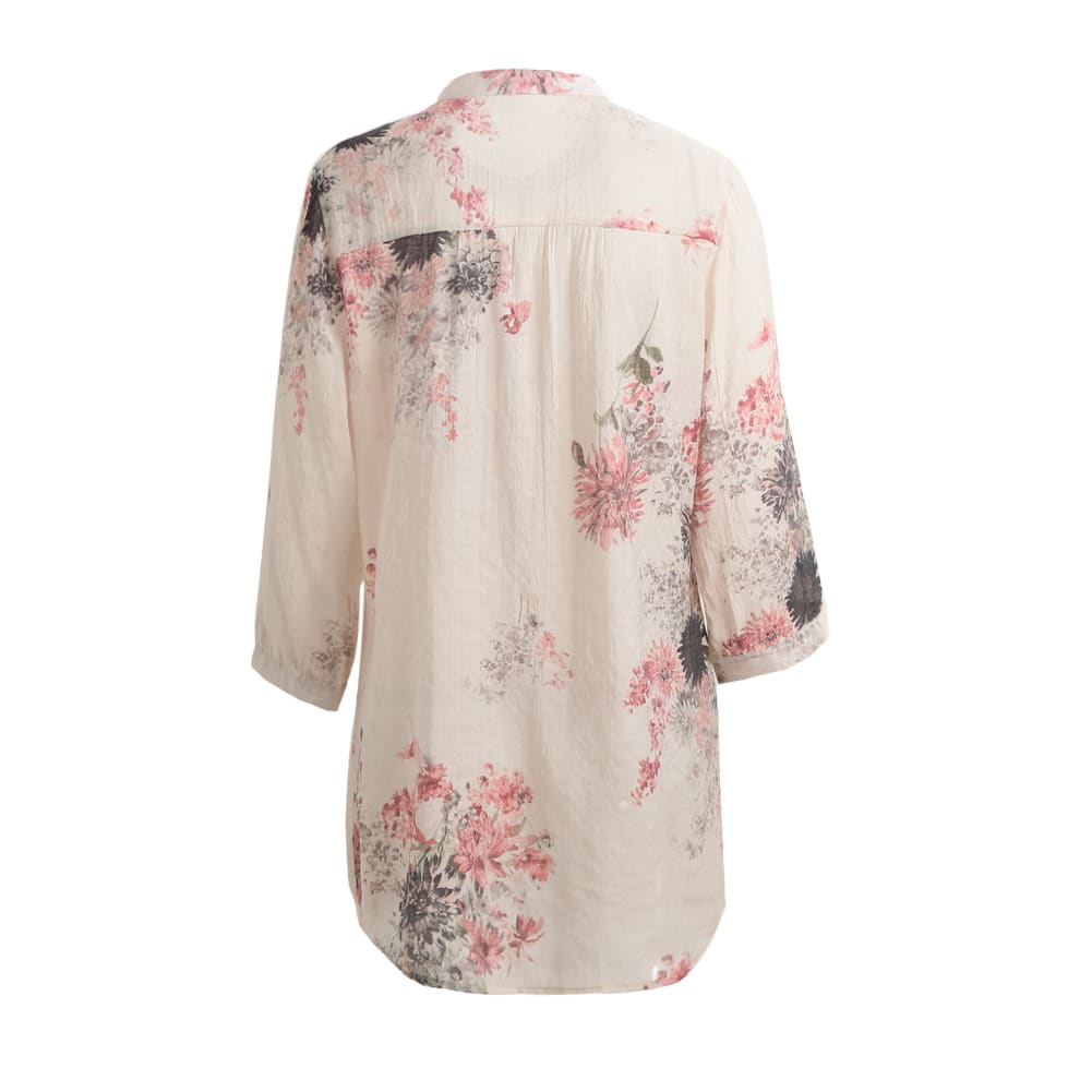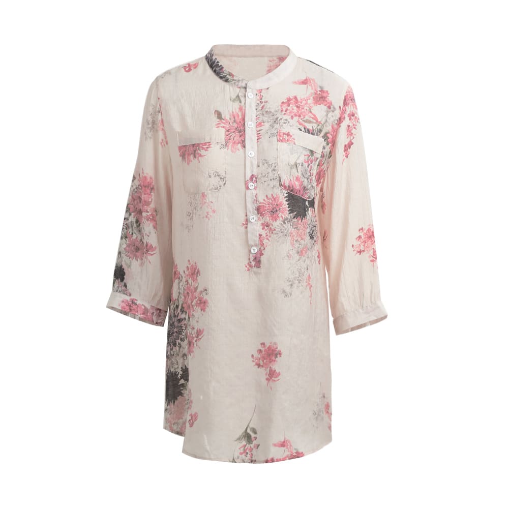 Light and lovely, this printed floral blouse brings a modern twist to a vintage pattern. The flowing drape brings a playfulness to it, while the modest design makes it perfect for formal wear.
