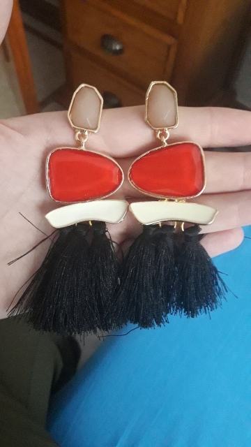 I am very happy with the earrings. A little bit heavy on the ears but you’ll probably wear them a max of 4-6 hrs anyway. I tried to change the order to the BLACK earrings through messaging but I think the seller didn’t understand me and they still sent me the white one. Anyway, it’s ok and still lovely. It was my fault for pressing the wrong button.