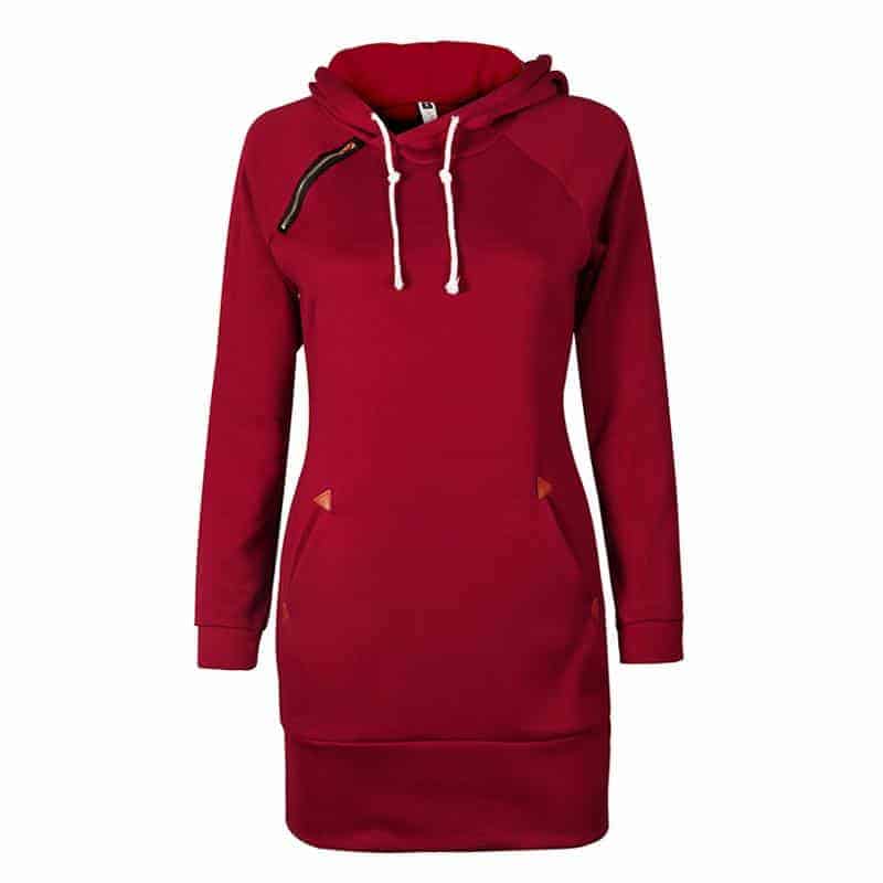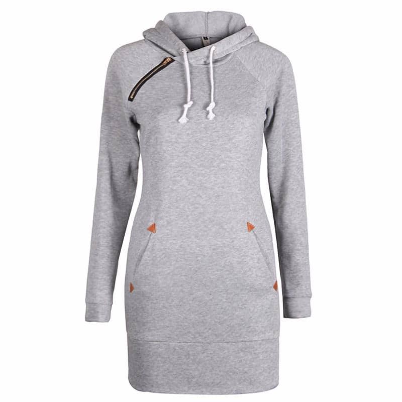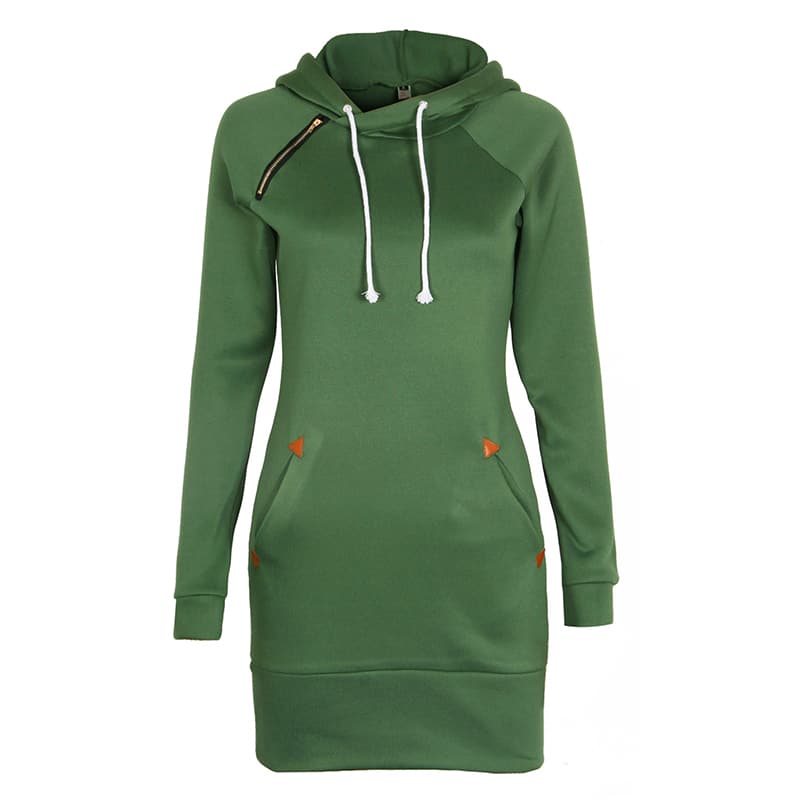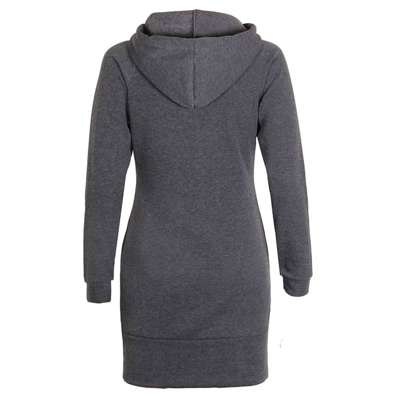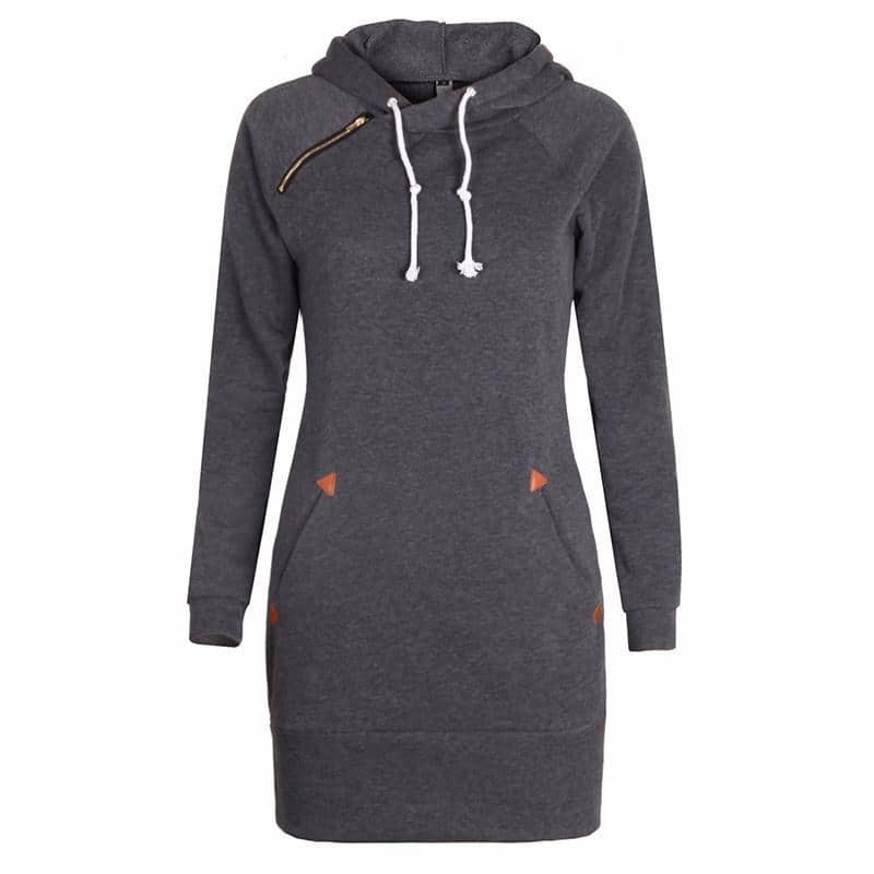 Sometimes understated is the way to go, and with this long bodied hoodie you’ll stay warm while making a subtle fashion statement. The shoulder zipper and pocket accents add just the right bit of interest.