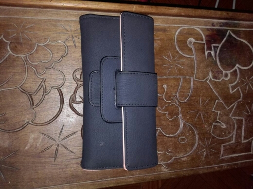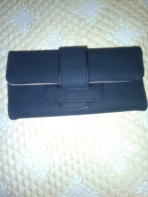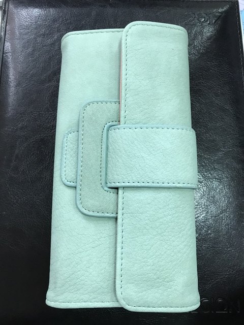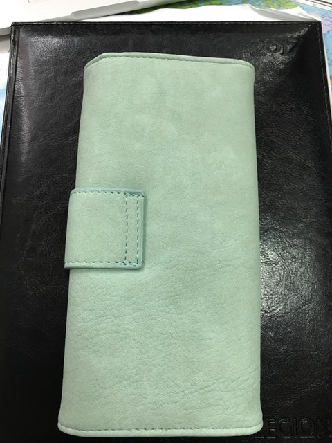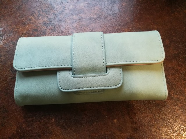 This beautiful purse wallet has a suede textured covered with a snap-flap seal. Plenty of space for cards and photos inside, and an internal pocket for receipts and cash.