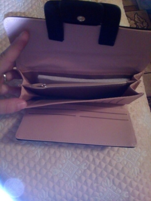 I am satisfied with this wallet. Package arrived in a month. Perfect purse and comfortable.