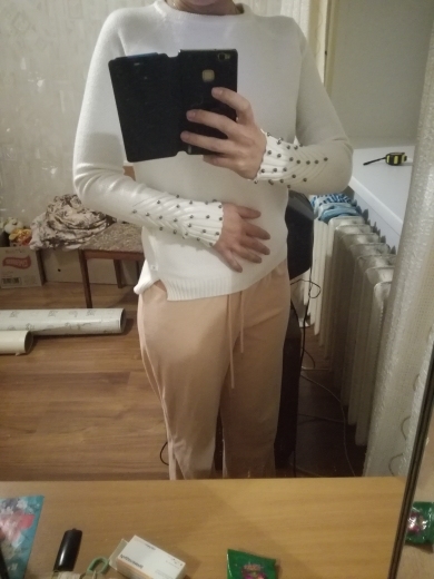 Sweater has a good quality. Odorless. Very soft and comfortable to the body. Very beautiful. Recommended!