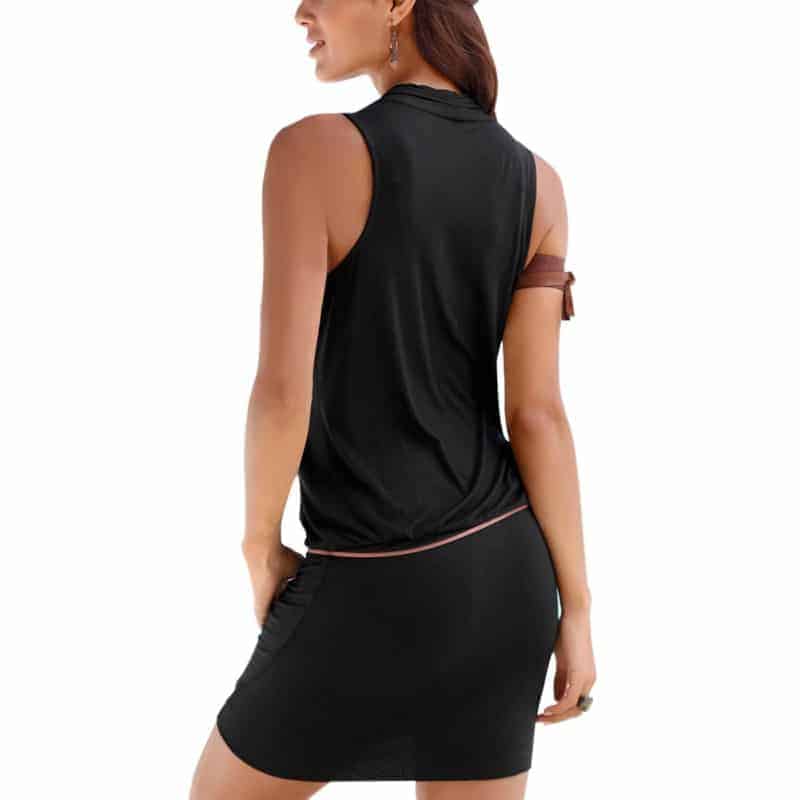 Ladiez knows there is a subtle power to a v-neck dress, bringing an air of sophistication and energy to the woman wearing it. The great free-flowing lines of the top combined with the hip-hugging curves of the skirt for a daring look, accented by a cute rope belt.