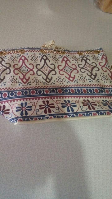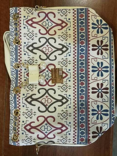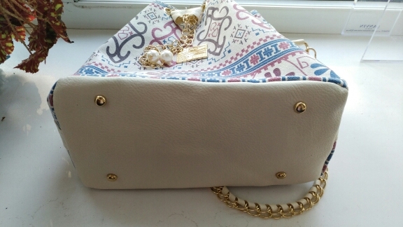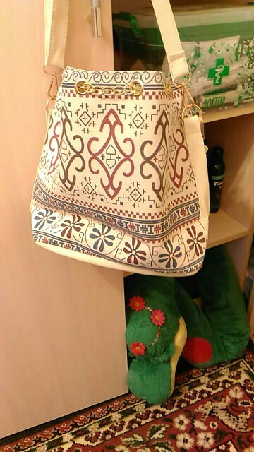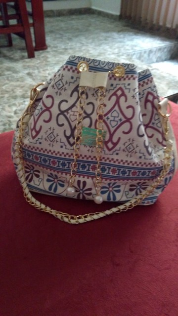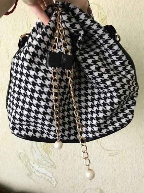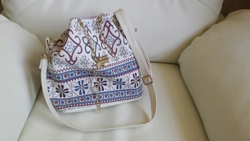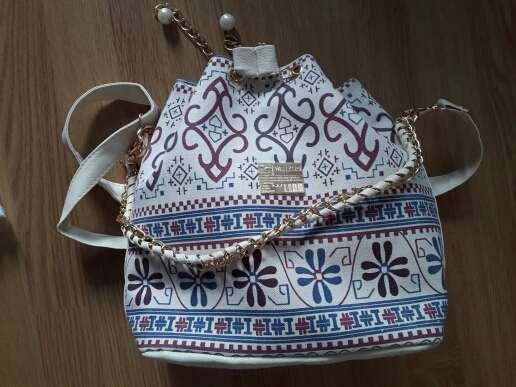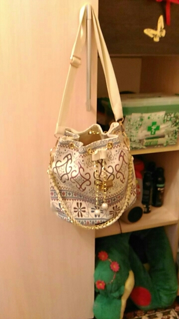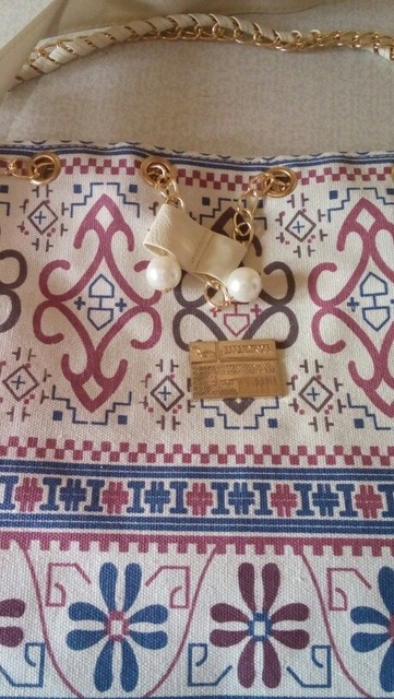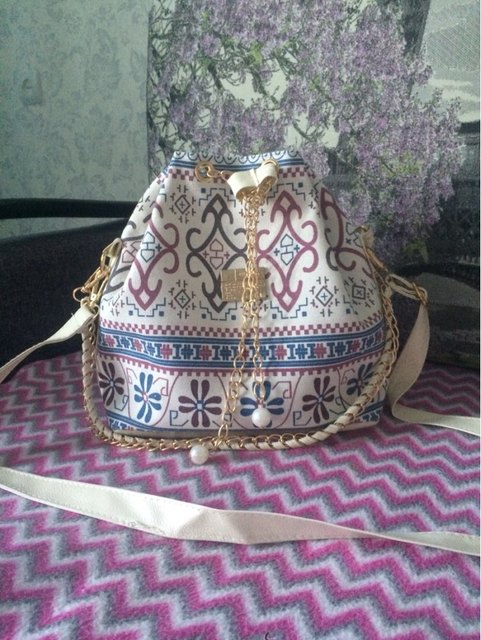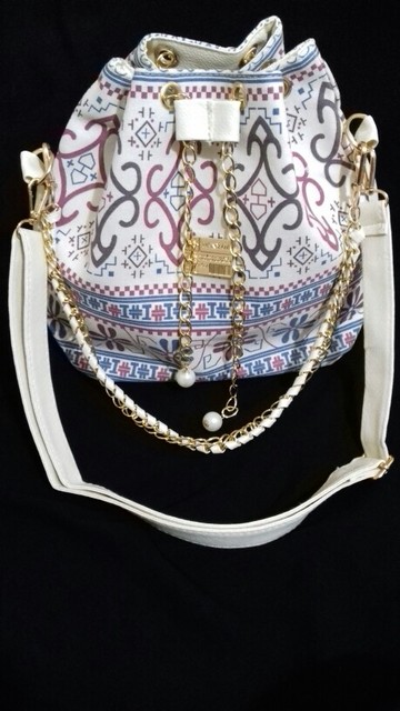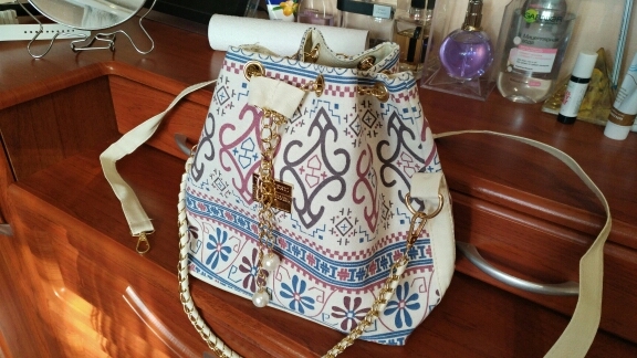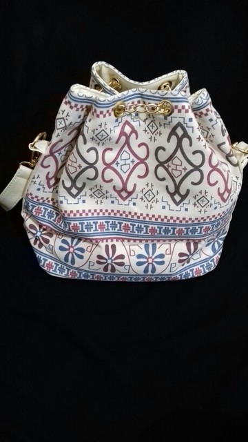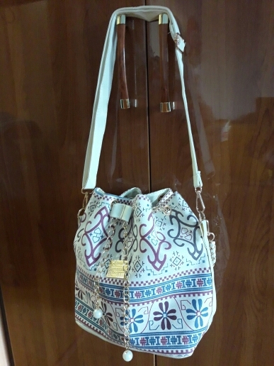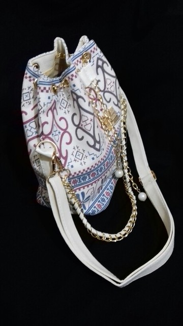We have to admit, we have a love of drawstring bags. The art design of this piece with its gold and faux-pearl accents makes it a great addition to a whimsical outfit aiming for elegance.