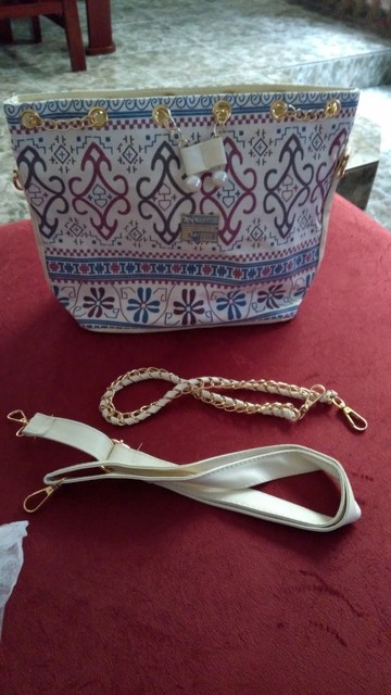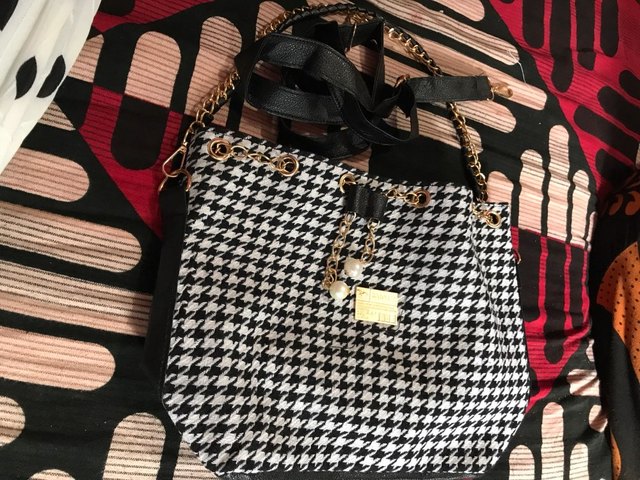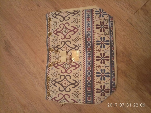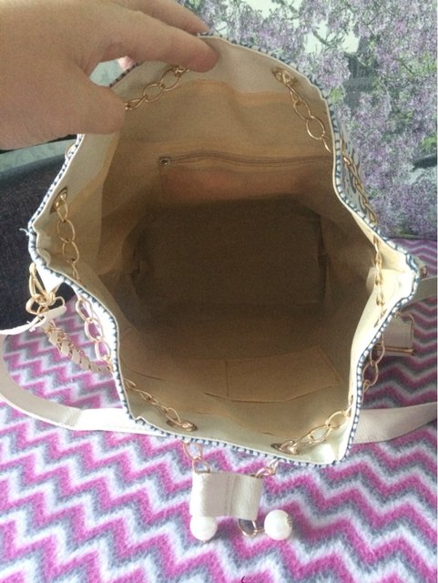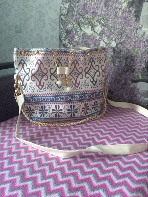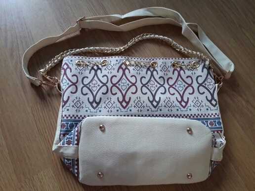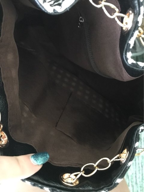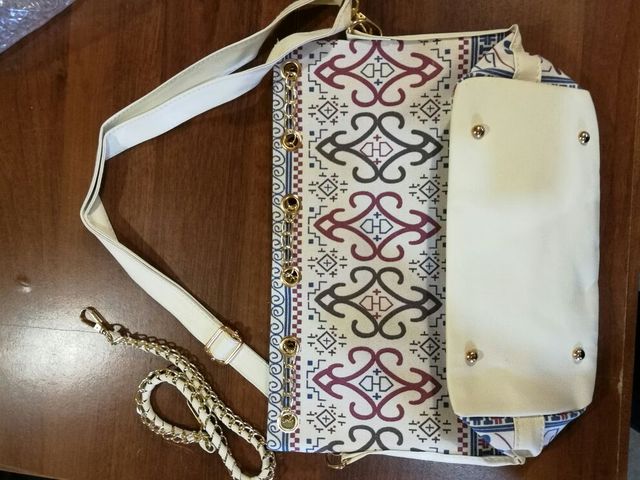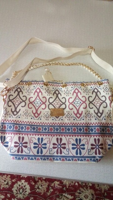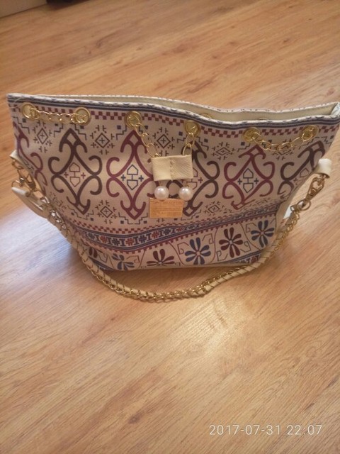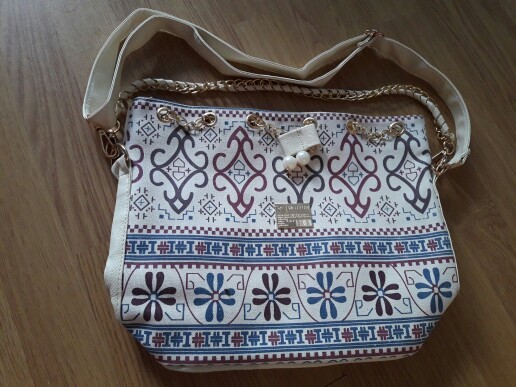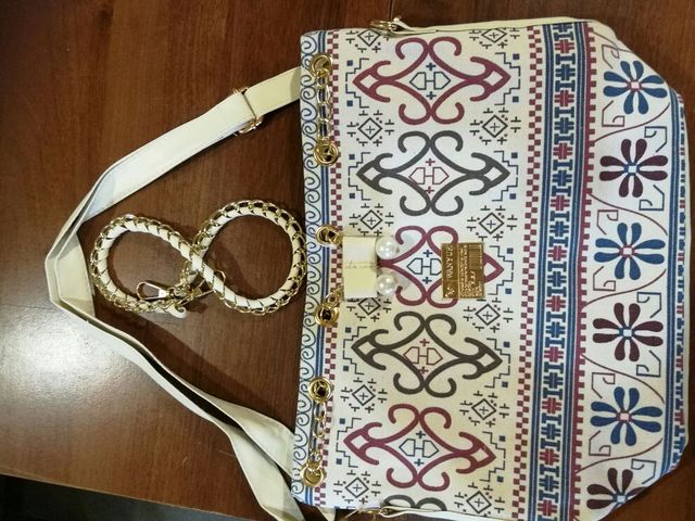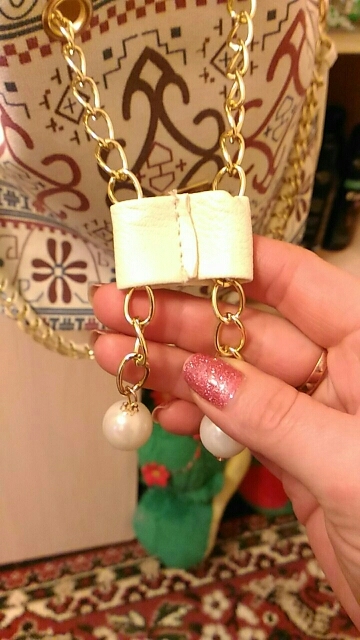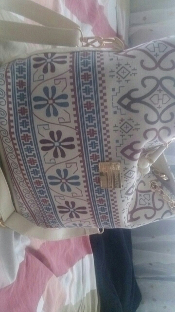We have to admit, we have a love of drawstring bags. The art design of this piece with its gold and faux-pearl accents makes it a great addition to a whimsical outfit aiming for elegance.